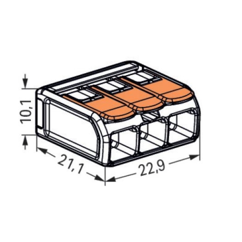 Svorka WAGO 221-613 3x6 s páčkou pro bezpečné spojení vodičů o průřezu až 6 mm2.