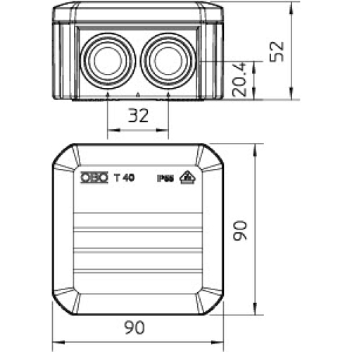 Instalační krabice OBO T40 IP55 pro bezpečné uložení vedení a zařízení.