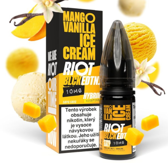 Riot Hybrid Salt Mango Vanilla Ice Cream - nová příchutí, která vás zavede do světa exotických chutí. Dřevitá chuť manga se mísí s krémovou zmrzlinou a madagaskarskou vanilkou.