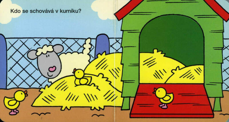 Podívej se pod okénko a najdi toho, kdo se tam schovává. Leporelo pro děti, které je naučí zábavnou formou poznávat zvířátka na dvorku.