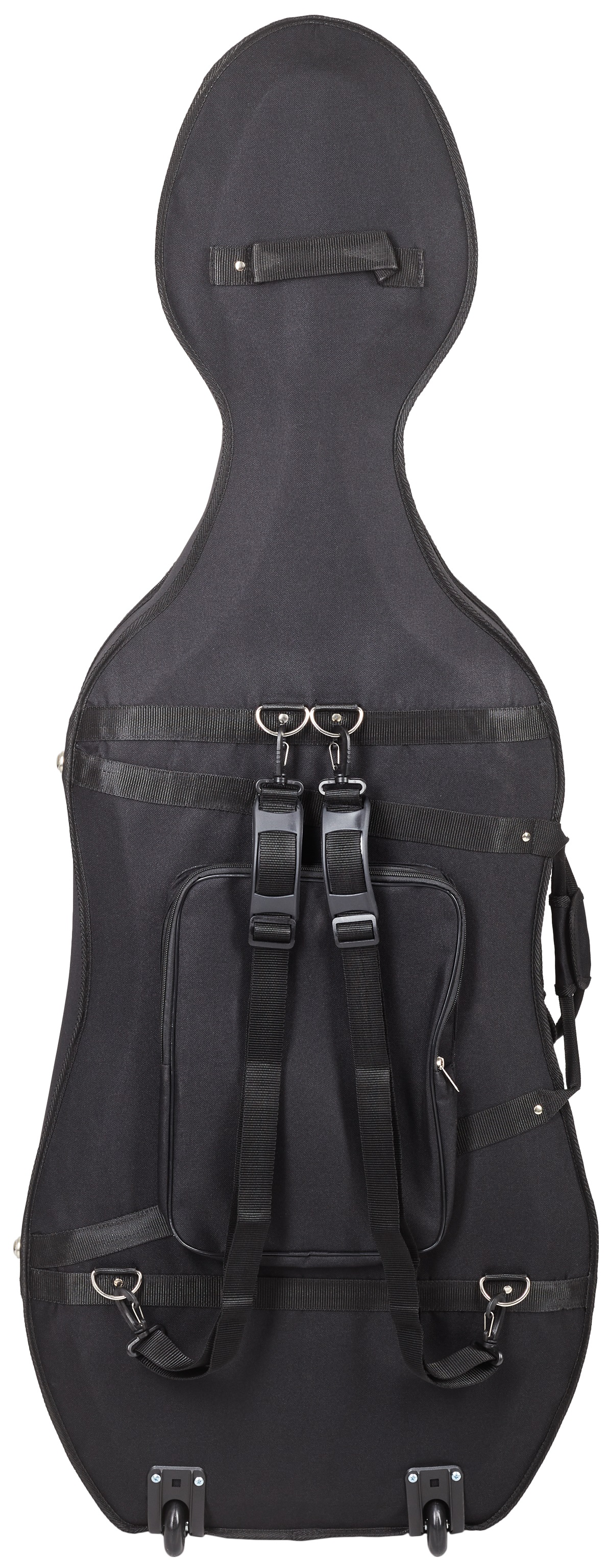 Pouzdro na violoncello Obal na violoncello velikosti 4/4 zhotovený z vodovzdorné pěnové hmoty nabízí vnitřní sametový potah pro větší pohodlí nástroje, externí kapsu pro drobné příslušenství, dva držáky na smyčce a kolečka pro snadný transport.