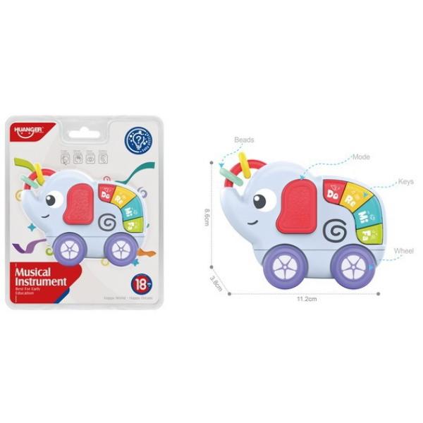 Slon s piánkem. Rozměry 11,2x3,8x8,6 cm. Světelné a zvukové efekty. 2xAAA baterie nejsou součástí. Věk 1,5+