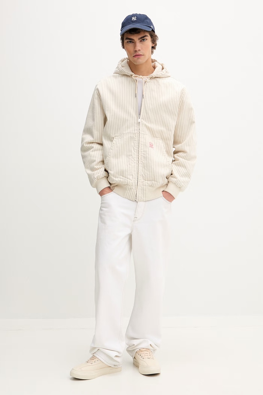 Levi's krátká bunda pánská bavlněná POTRERO DENIM x WORKWEAR - perfektní kombinace funkčnosti a módy. Univerzální střih regular fit a módní pruhovaný vzor vám zajistí, že budete vypadat stylově i v chladnějších dnech.