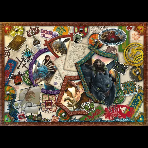 1 000-dílná skládačka Jak vycvičit draka – Hrdinové představuje jedinečnou koláž postav z titulního filmu. Puzzle obsahují 1000 dílků. Rozměr složeného obrázku: 683x480 mm