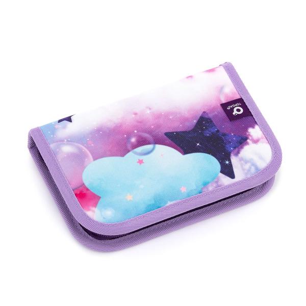Jednokomorový školní penál je vybaven osmnácti klasickými gumovými úchyty na pastelky a fixy, čtyřmi širšími úchyty na pravítka, kružítko či nůžky, a dvěma většími úchyty na gumu a struhadlo. Pod klopou z průhledné fólie najdete…