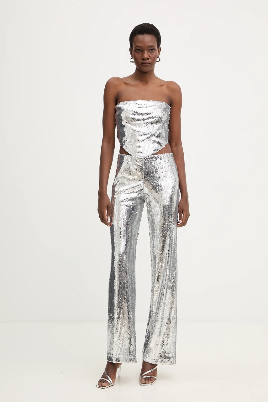 Kalhoty z kolekce Nanushka. Model vyroben z tenké, nepružné tkaniny. Model ze vzdušného materiálu s vysokým obsahem viskózy.