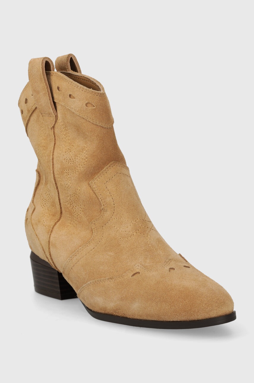 Objevte kouzlo westernového stylu s elegantními botami Medicine. Vyrobené ze semišové kůže, tyto boty na podpatku dodají vašemu outfitu šmrnc a sebedůvěru.