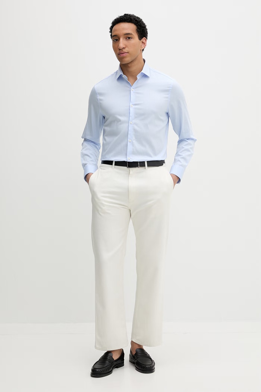 Klasická pánská pruhovaná košile Calvin Klein s bavlnou a příměsí lyocellu a elastanu. Perfektní pro městský a ležérní styl.