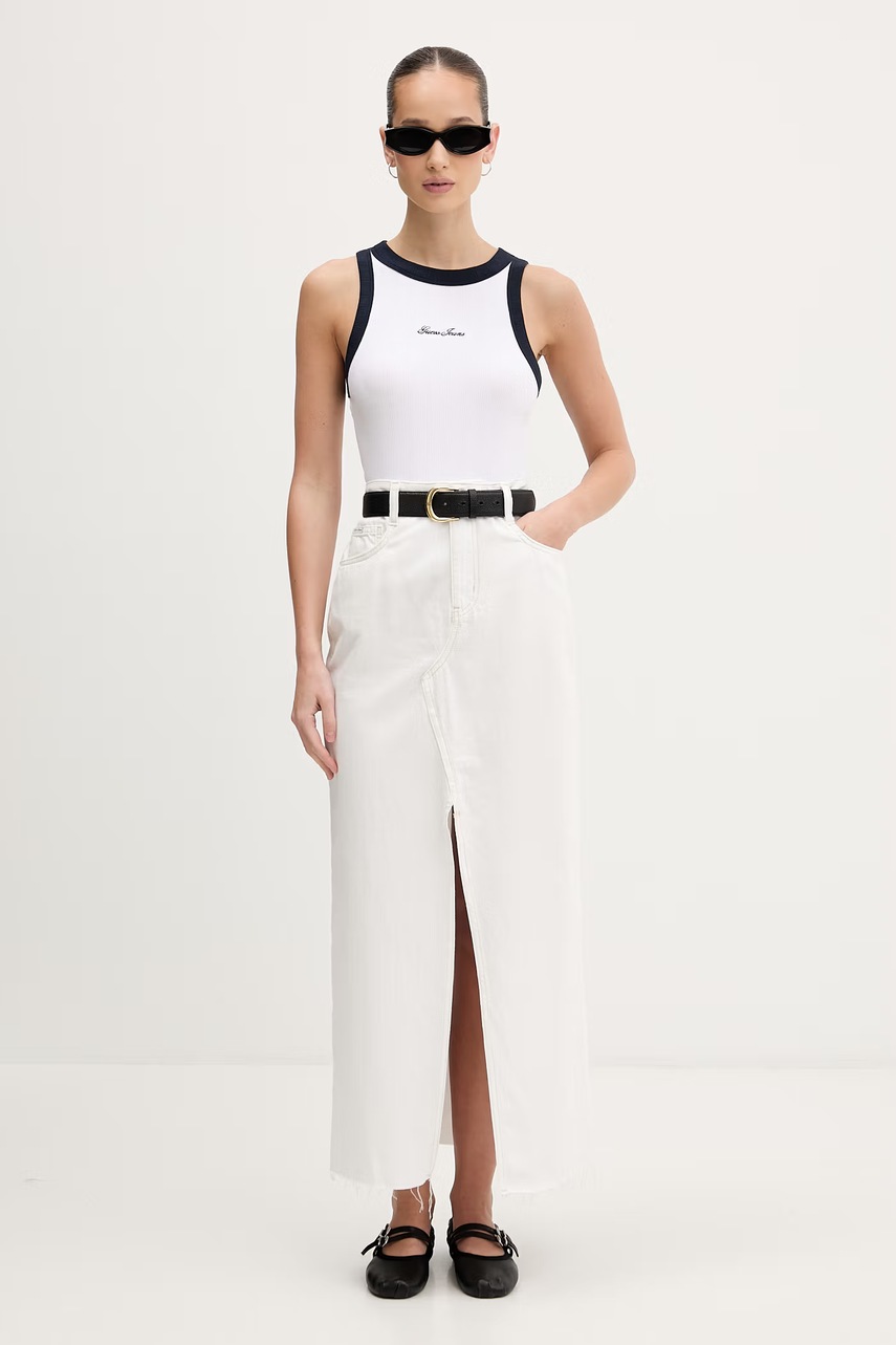 Přiveďte do svého šatníku tento stylový bílý top Guess Jeans s přiléhavým střihem a elastickým žebrovaným úpletem. Zajišťuje pohodlí a volnost pohybu.
