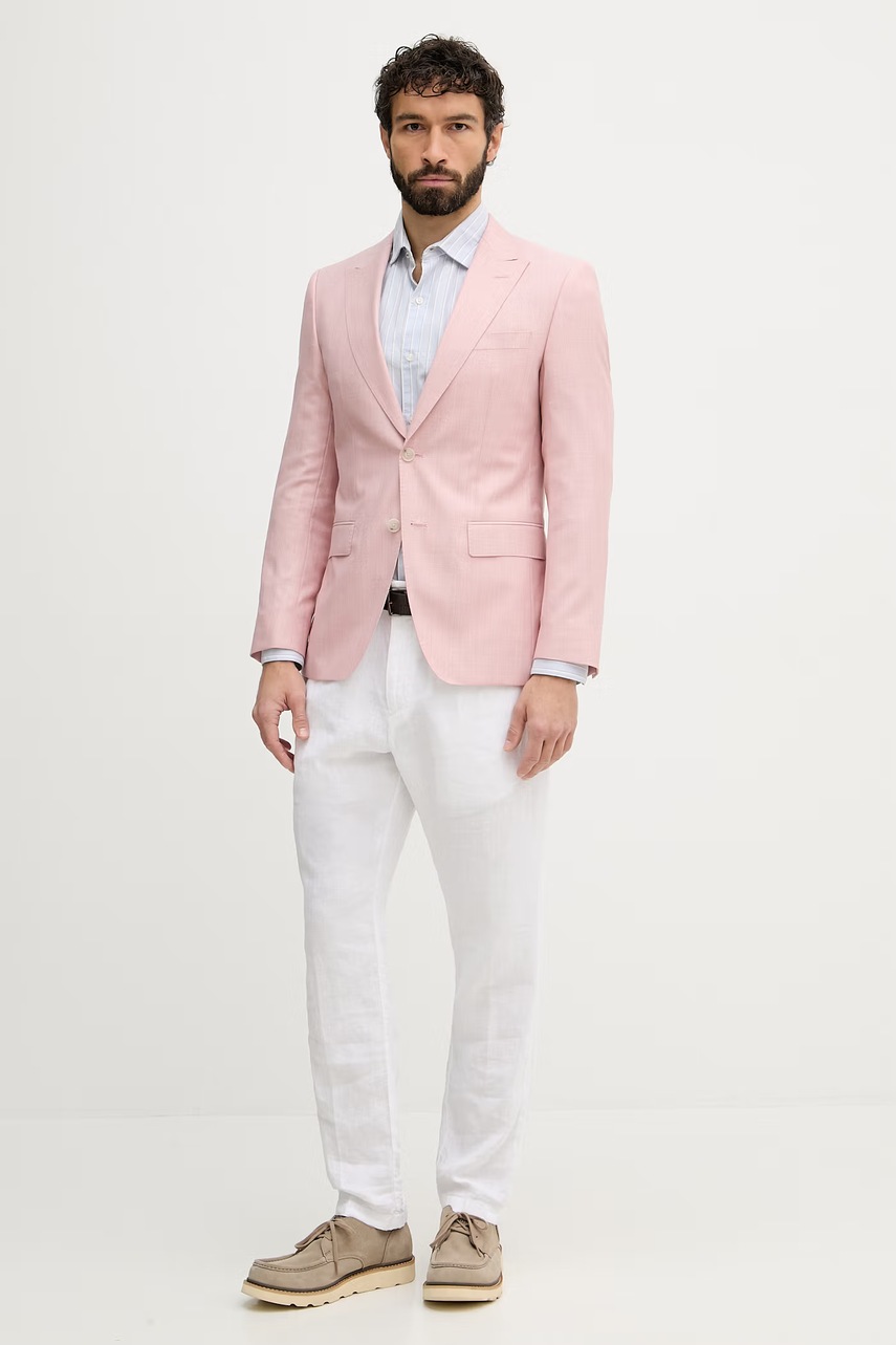 BOSS jednořadé sako pánské vlněné - klasický model pro profesionály, který podporuje svobodu pohybu a nabízí výjimečné pohodlí.