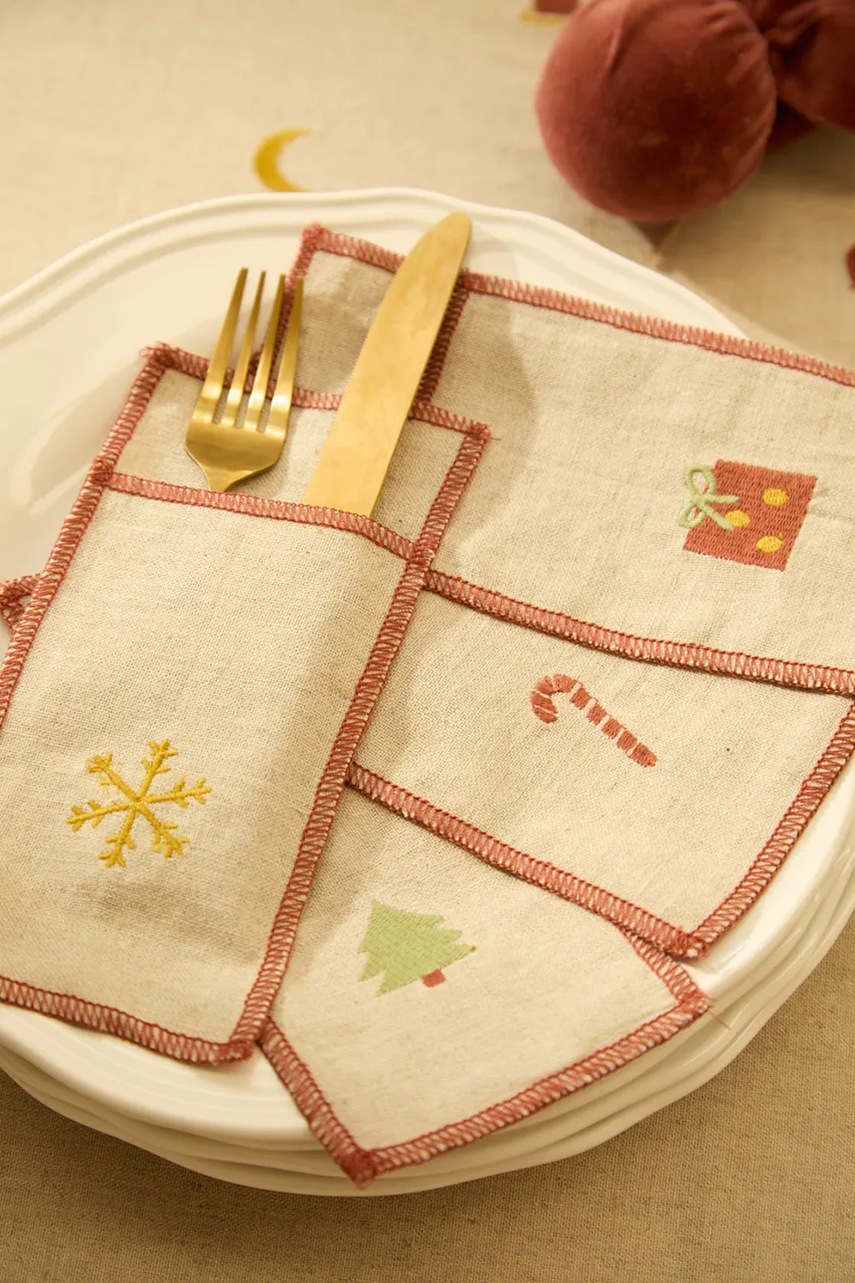 Dávejte si vánoční sada obalů na příbory se lnem Calma House Joy a přineste si domů pohodu a útulnost. Tři barevné varianty, aby se vám líbilo.