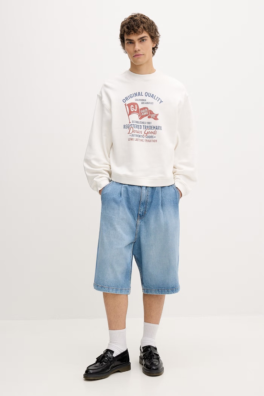 Pánská mikina Guess Jeans je bavlněný model bez zapínání, který nabízí volnost pohybu a měkkost materiálu. Ideální pro každodenní a streetwearové stylizací.