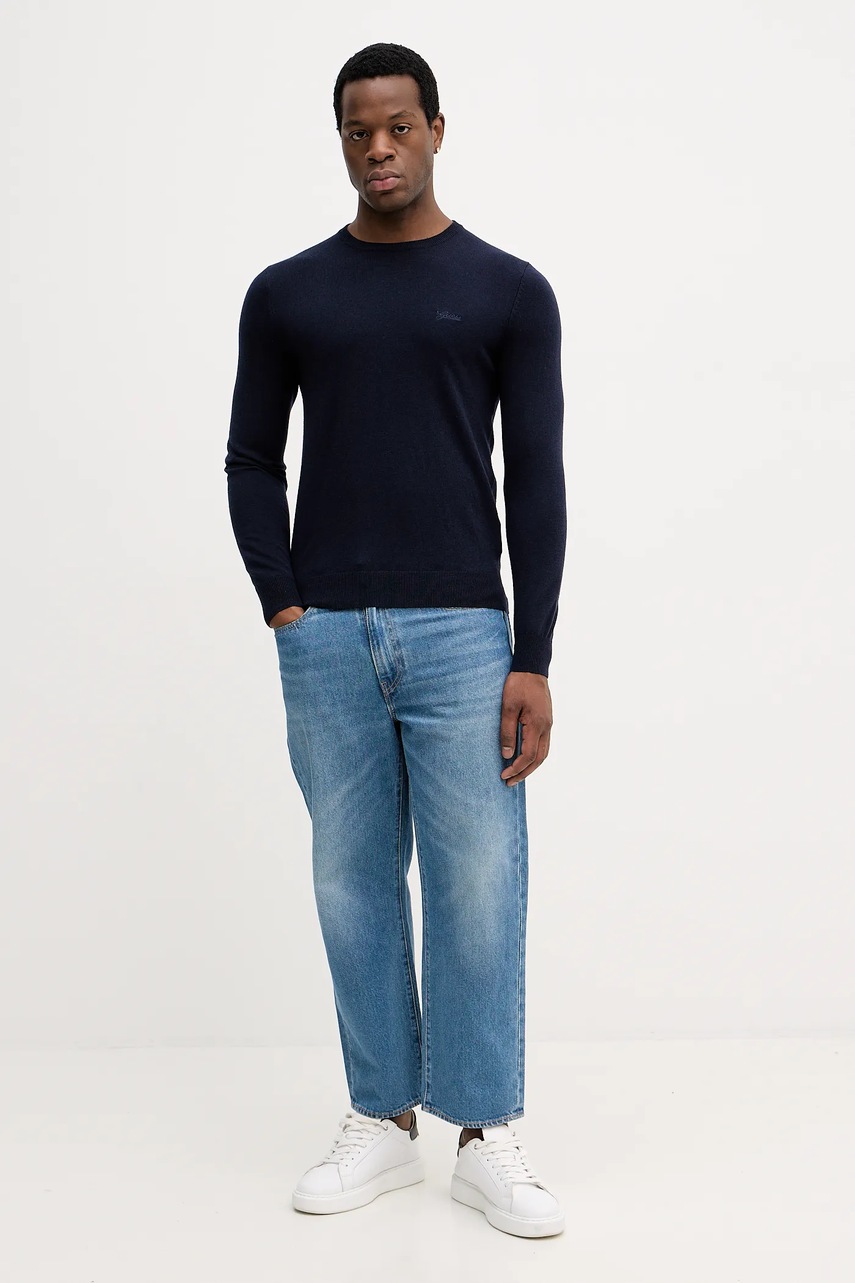 Svetr z hedvábné směsi Guess DANIEL. Elegantní a pohodlný model z tenkého, elastického úpletu. Perfektní volba pro každodenní stylovou kombinaci.