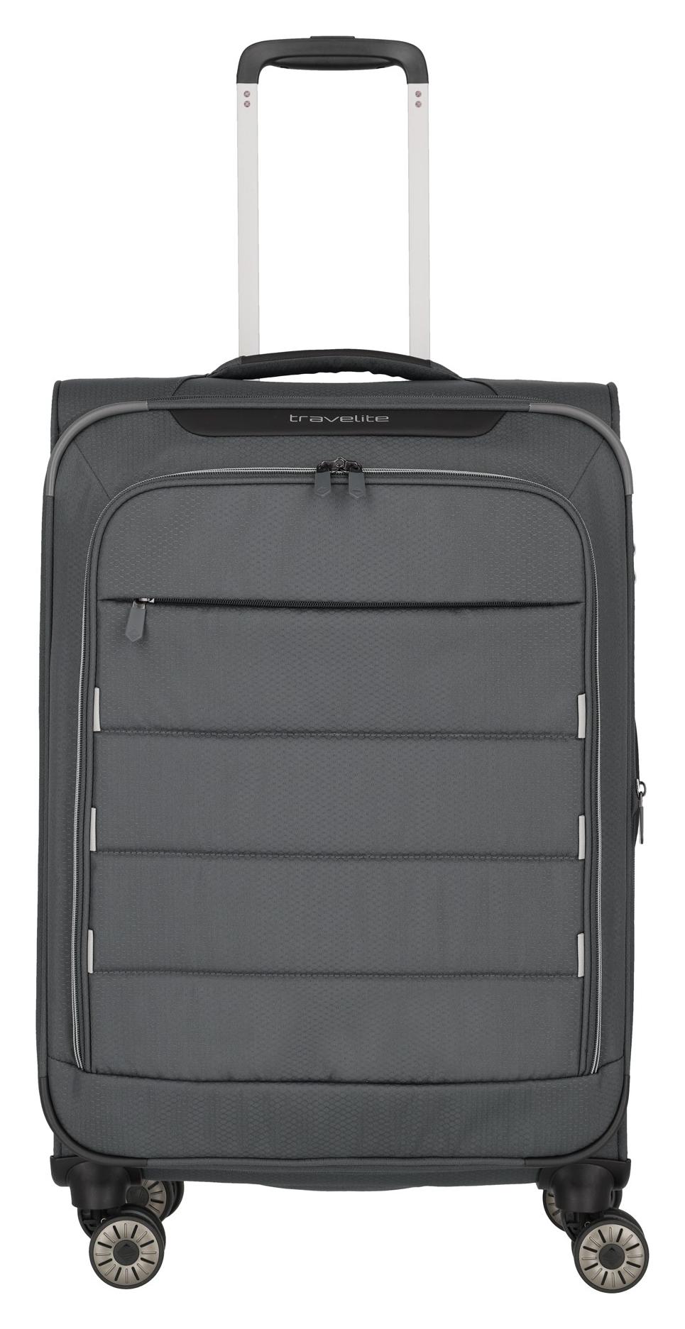 Střední cestovní kufr na kolečkách Travelite Skaii 4w M Anthracite – superlehký, prostorný a udržitelný kufr pro bezstarostné cestování.