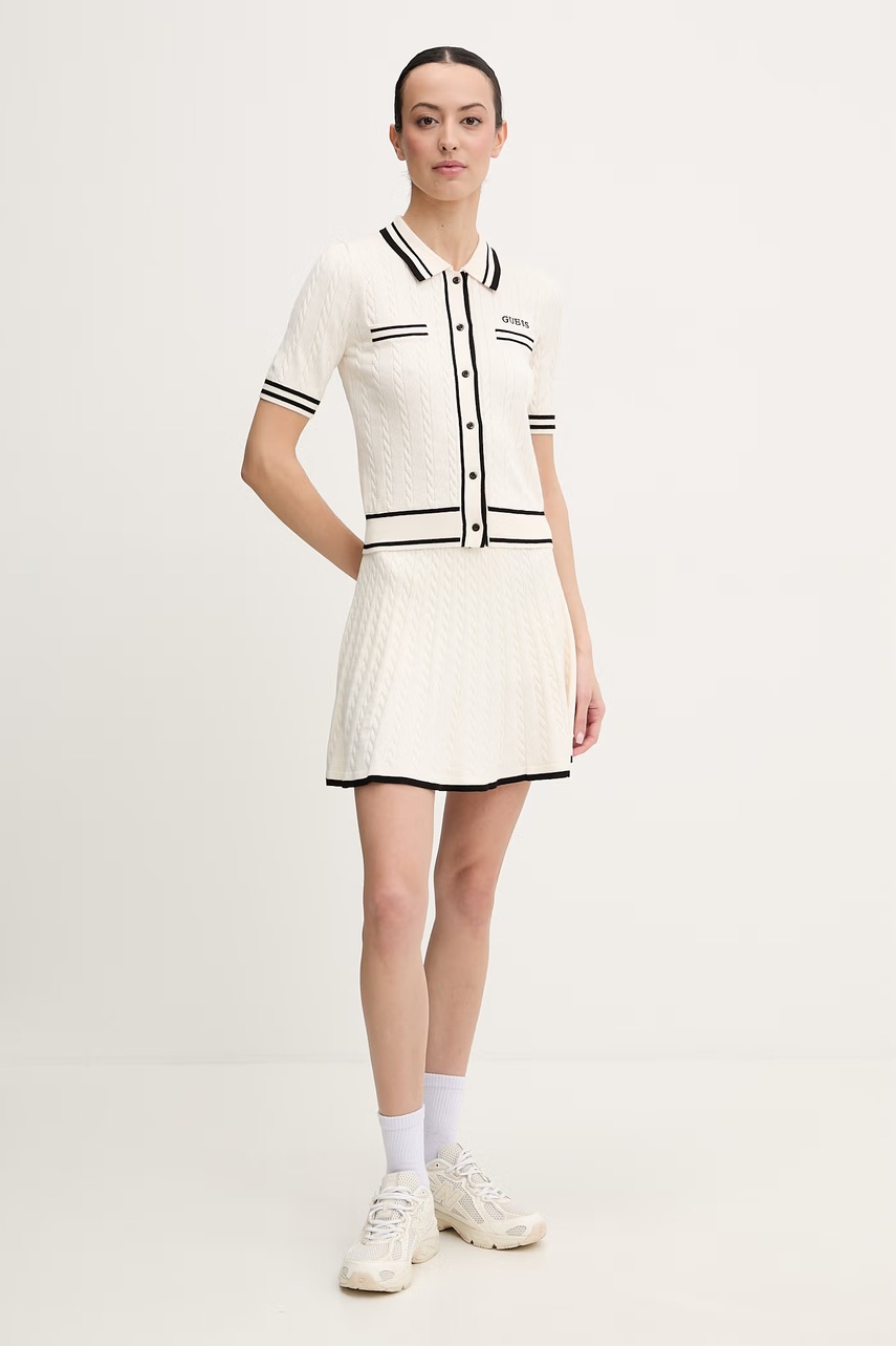 Kardigan Guess SHARI - elegantní a stylový doplněk na každý den. Měkká pletenina a vzdušný materiál vám zajistí pohodlí a komfort. Ideální pro každodenní stylové kombinace.