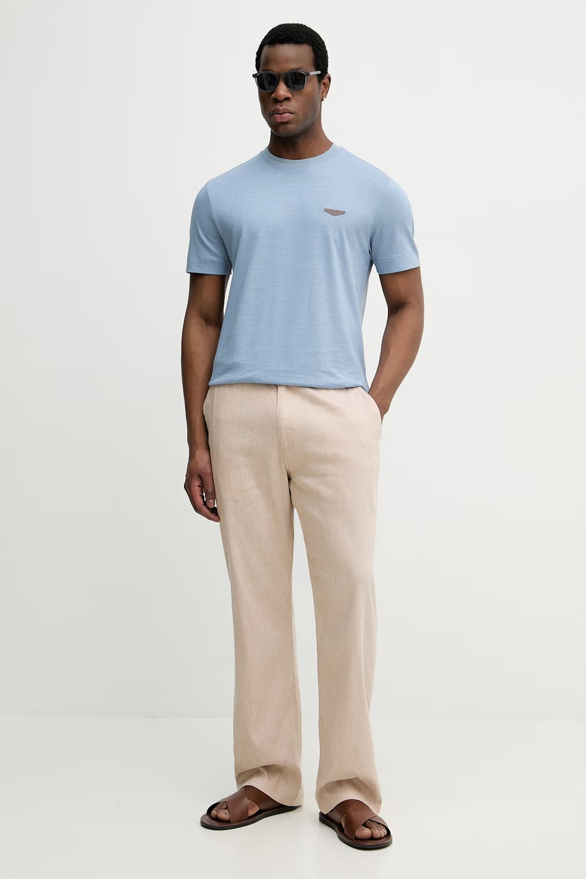 Tričko BOSS X ASTON MARTIN v modré barvě s aplikací, které kombinuje luxus a sportovní styl. Kvalitní materiál a pohodlný střih pro dokonalý vzhled.
