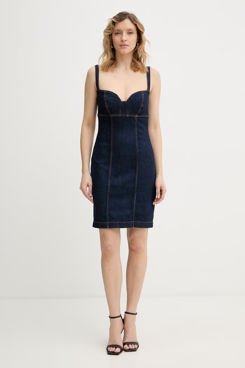 Džínové šaty Guess ADELAIDA - stylové a pohodlné šaty pro každodenní život. Kombinujte je s tenisky nebo botami a máte dokonalejší outfit!