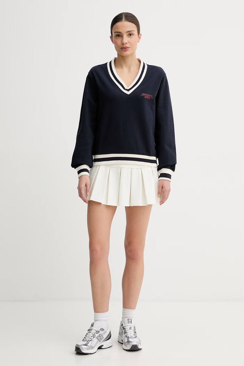 Tmavě modrá mikina Guess X NORTH SAILS je pohodlnou volbou pro každodenní styl. Spojuje ležérní styl s decentním prvkem značky a nabízí pohodlí a módní vzhled.