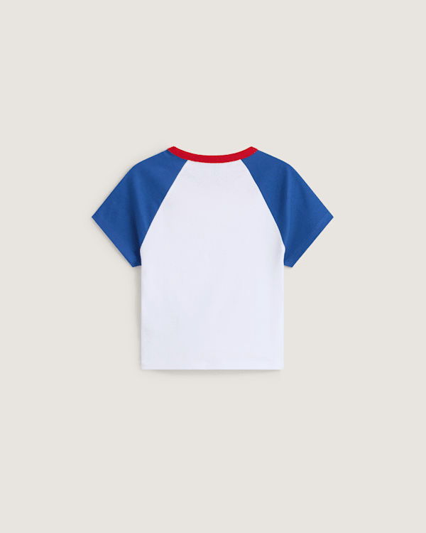 Throw it back to the 90s s tímto retro-inspirovaným raglanem od Vans. Tento přiléhavý triček se vyznačuje kontrastními krátkými rukávy a krátkým krkem, dokončeným klasickým logem na přední straně.Je to nostalgické, krátké, základní zboží, které vás přivede zpět do dob 90. let.