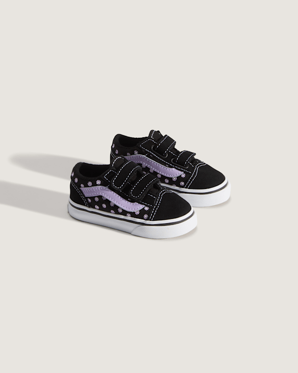 Vans Toddler Old Skool Shoes v purpurové barvě kombinují styl a funkčnost. Ideální pro děti ve věku 1-4 roky, s dvojitým suchým zipem pro snadné obouvání.