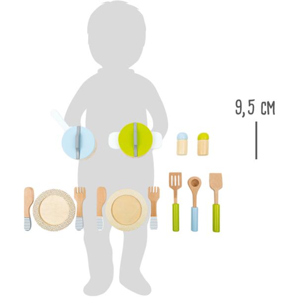 S tímto barevným nádobím z robustního dřeva je vaření pro hosty skvělou zábavou. Odnímatelné poklice nádobí se snadno uchopují. Tímto způsobem se může dětská kuchyně v okamžiku stát kuchyní špičkového šéfkuchaře. Děti mohou zároveň trénovat…