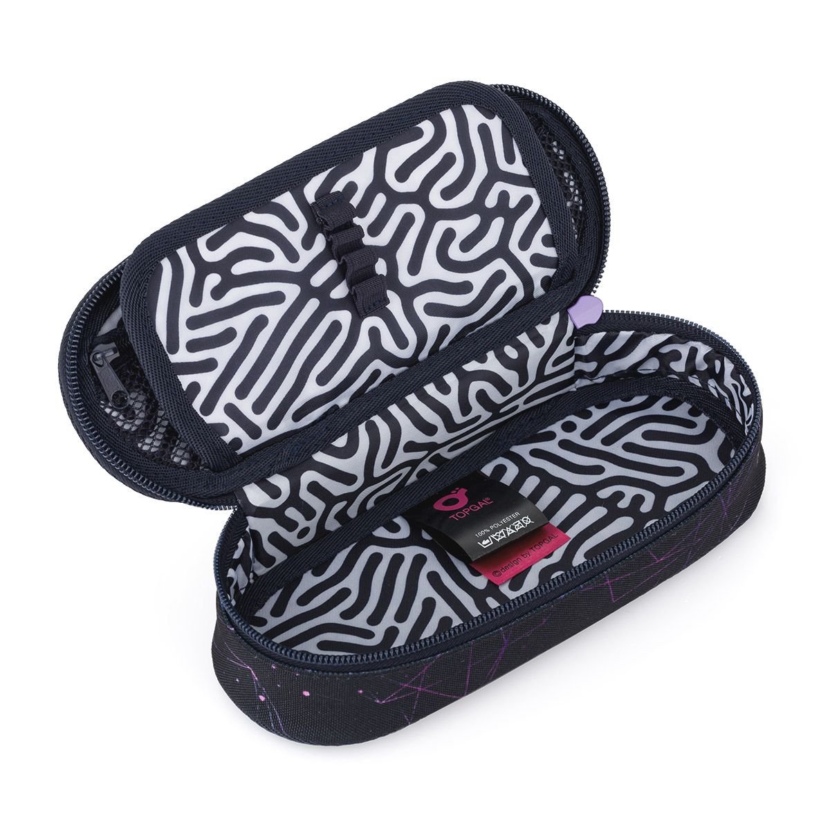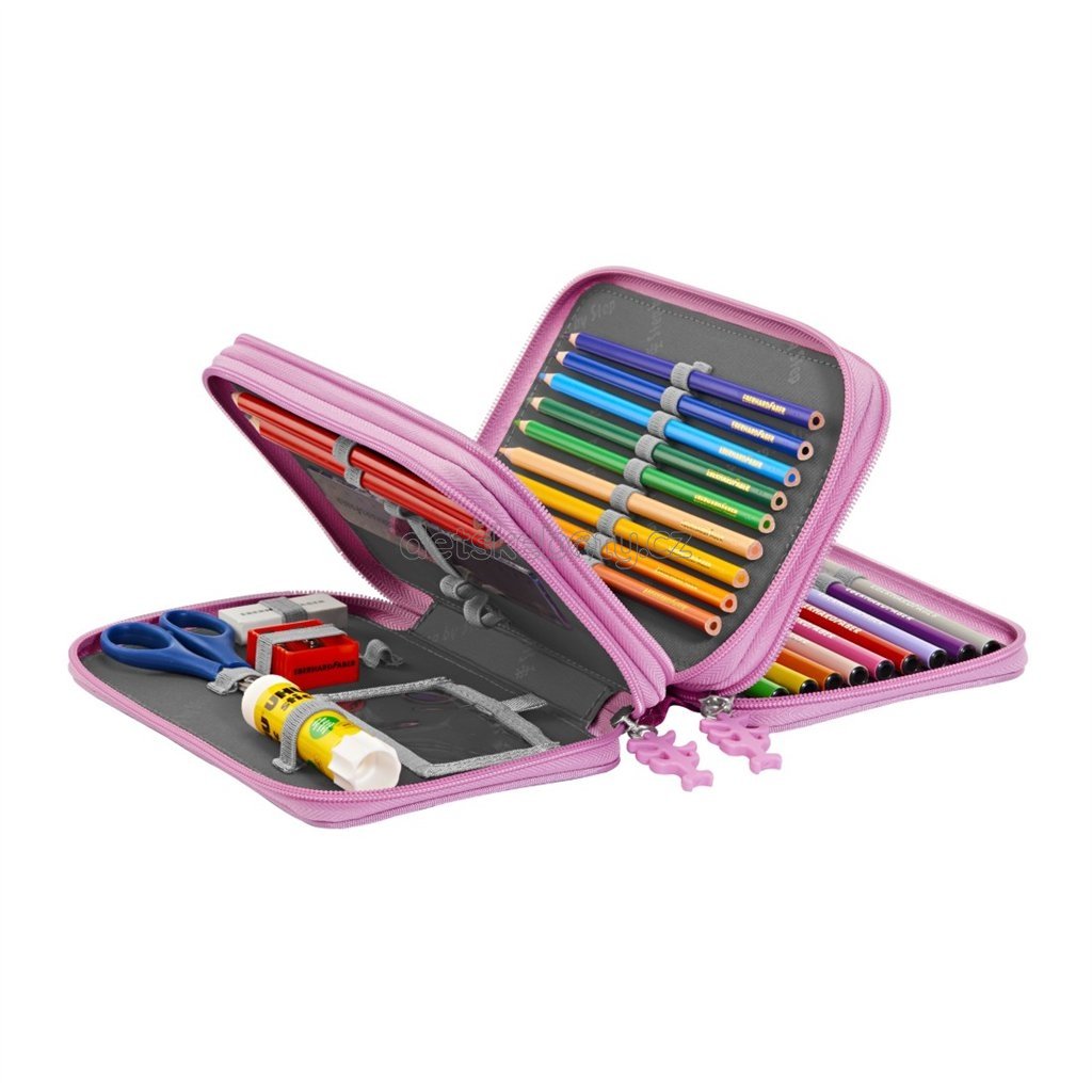 Polstrované studentské pouzdro ETUE 25077 nabízí dostatek prostoru pro psací potřeby a efektivní organizaci s gumičkami na propisky. Odolný design zajišťuje ochranu a snadnou manipulaci díky velkým zipům.