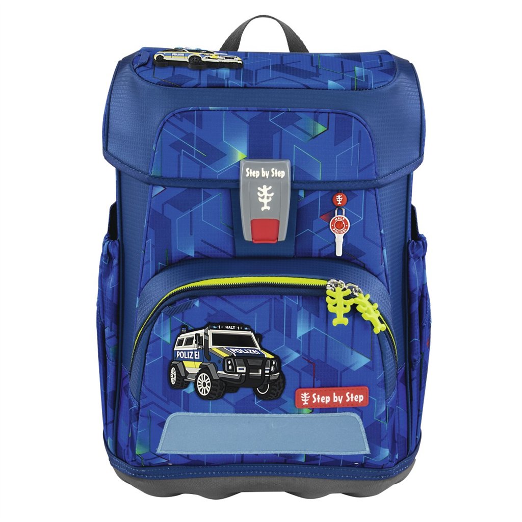 Školní aktovka Step by Step CLOUD, Police Truck Charly - 5 dílný set, AGR certifikát. Prostorná aktovka pro děti od 100 do 150 cm výšky, vhodná pro 1. - 4. třídu.
