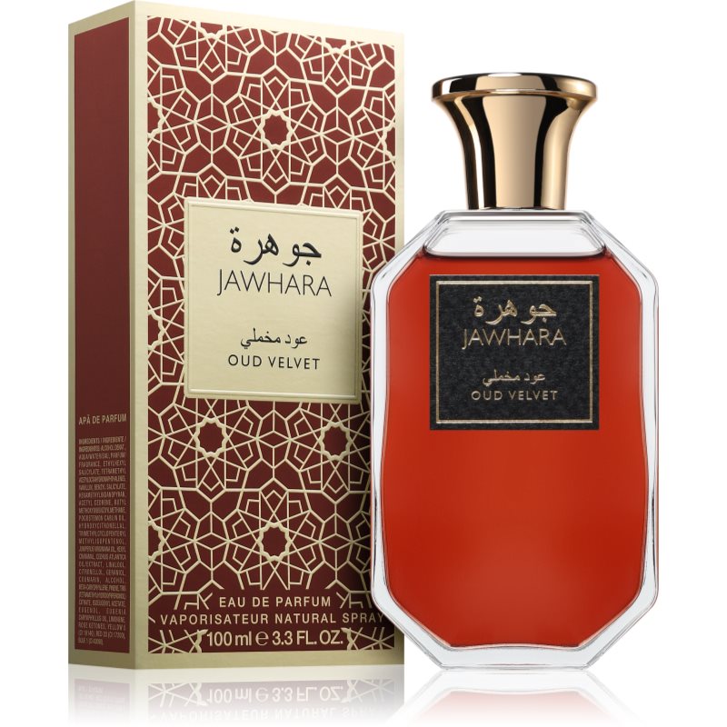 Jawhara Oud Velvet, 100 ml, Parfémované vody unisex, Hřejivost vůně, která se stává vaším podpisem Parfémovaná voda Jawhara Oud Velvet je oslavou rafinovaného spojení výrazných aromatických akordů a hřejivého základu. Mísí kořenité tóny a sametové…