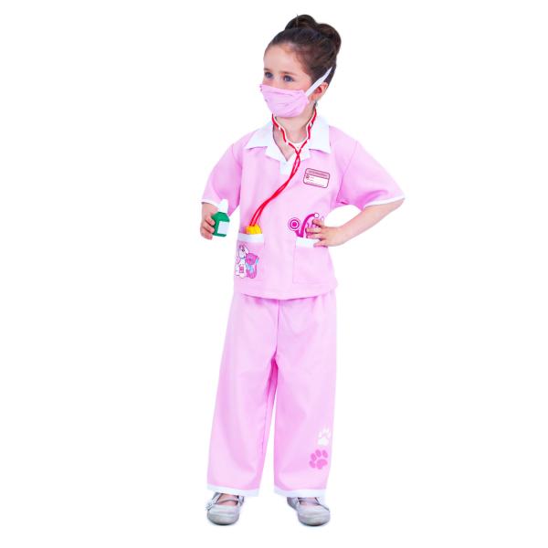 Úžasný kostým pro malé veterinářky! Kostým ve velikosti M je určen pro holčičky ve věkovém rozmezí 6-8 let (116-128 cm). Sada obsahuje blůzu s kalhotami v růžové barvě se stylovým zvířecím motivem. Součástí balení je…