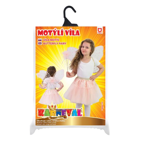 Dětský kostým tutu sukně růžová květinová víla s hůlkou a křídly