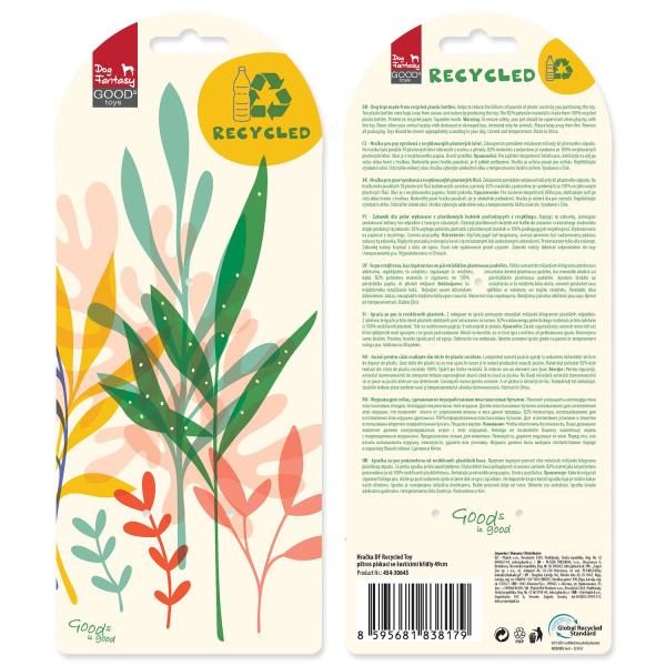 Pískací recyklační hračka se šustícím ocasem. Vhodná pro psy všech plemen. Zakoupením pomůžete redukovat miliardy kilo plastového odpadu. ? Obal je z recyklovaného, ale také recyklovatelného materiálu. Na hračku bylo použito 10 plastových lahví sklizených…