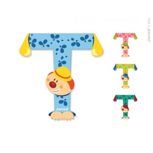 Dřevěné písmeno T Janod lepící 9 cm zelené/růžové/modré/tyrkysové