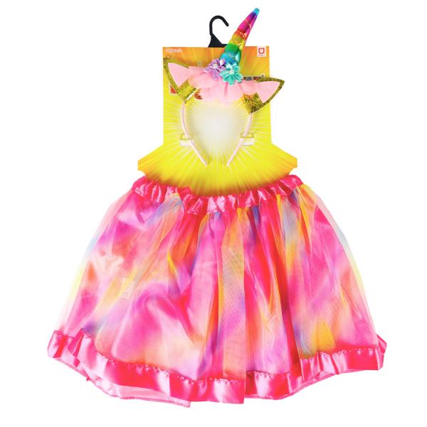 Roztomilá sukýnka TUTU je určena pro holčičky ve věkovém rozmezí 3-7 let (104-146 cm), obvod pasu 48-80 cm. Tento úchvatný kousek v duhových barvách je zdoben saténovým lemováním. Součástí této sady je senzační čelenka jednorožce…