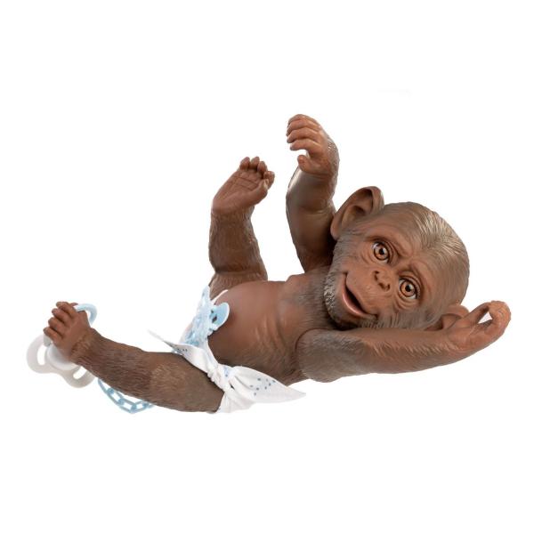 Veselé a roztomilé opičí miminko bez zvuku s vinylovým tělem s možností koupání, na kterém je zachycen věrohodně každý detail tohoto zvířecího mláďátka včetně různých záhybů, kromě pohlaví. Opičku lze koupat, ale je třeba dát…