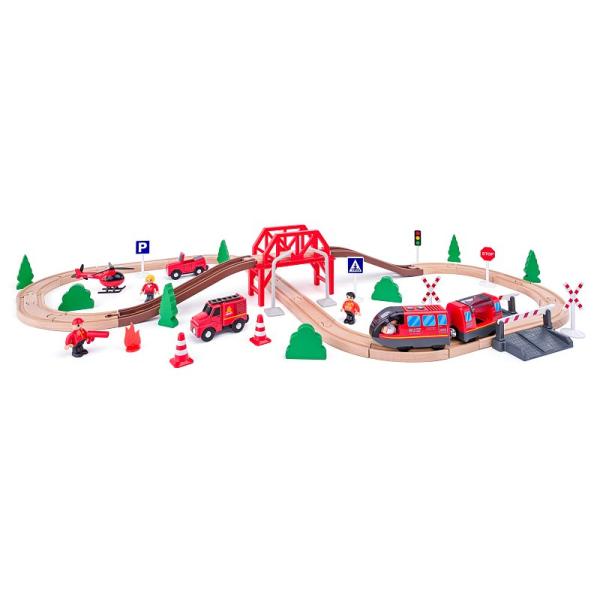 Woody Vláčiková dráha s elektrickou lokomotivou, hasiči, 60 dílů
