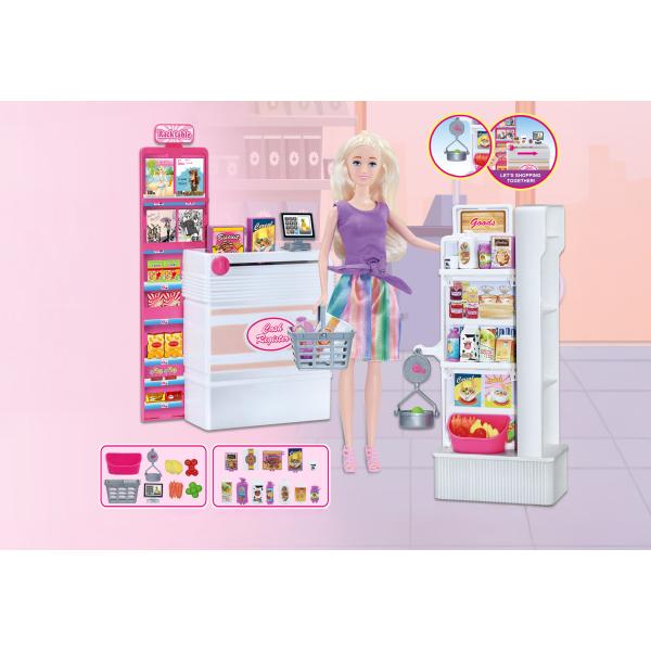 Panenka prodavačka umožňuje dětem hrát si na prodej v obchodě s různými doplňky a realistickými prvky pokladny. Velikost: 30 cm Obsah balení: panenka, regál na zboží, potraviny a zboží, pokladna s pásem, nákupní košík a…