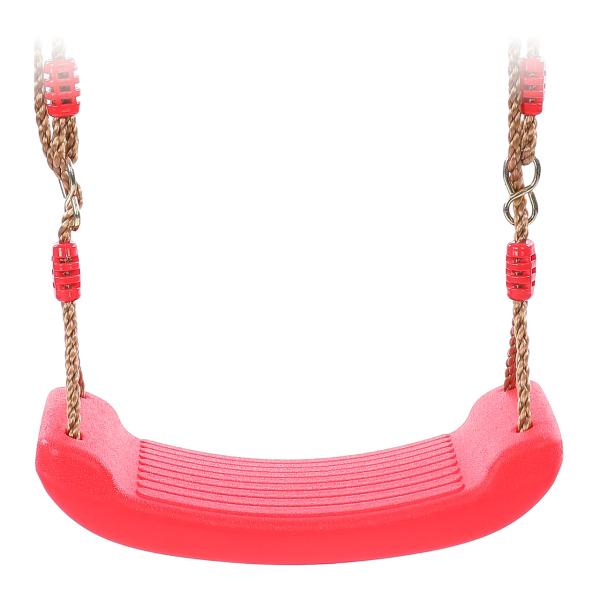 Plastová houpačka červená s výškově nastavitelnými lany. Nezbytný pomocník pro objevitele venkovní zábavy na dětském hřišti. Hlavní vlastnosti: nosnost: 100 kg výškově nastavitelné lano (max. 180 cm) sedací plocha houpačky 42x16,5x3,5 cm