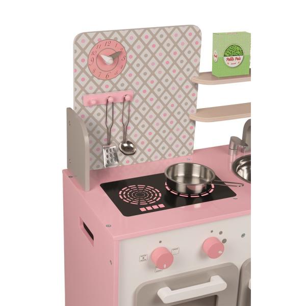 Malá dřevěná růžovo-bílá kuchyňka Macaron Janod je skvělá kuchyňka s otočnými knoflíčky a nadčasovým designem. Vestavnou součástí kuchyňky jsou dvě poličky na odkládání potravin, hodiny, věšák na vařečky, dřez, varná deska, trouba a otevírací skříňka.…