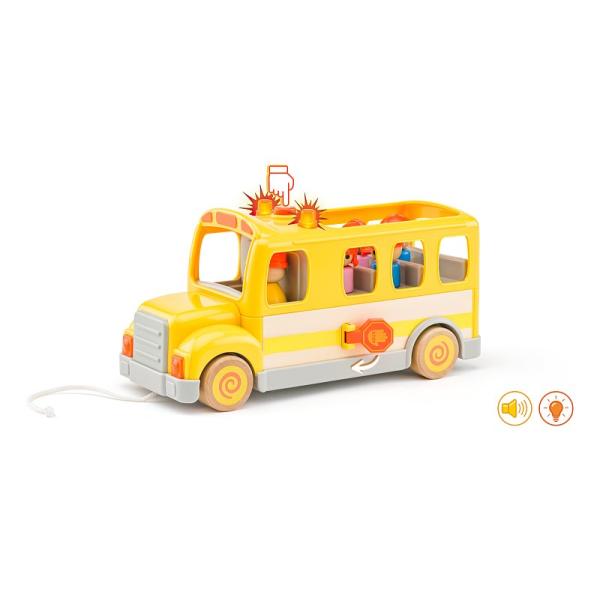 Školní autobus je vyroben v kombinaci kvalitního plastu a dřeva a obsahuje figurky řidiče a dětí. Má otevírací dvířka a vyklápěcí "stopku" pro bezpečný výstup a přechod cesty. Stlačením tlačítka na kabině řidiče se aktivuje…