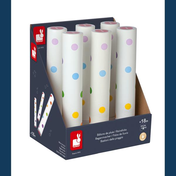 Janod Dřevěný hudební nástroj pro děti Padající déšť Confetti Rainstick