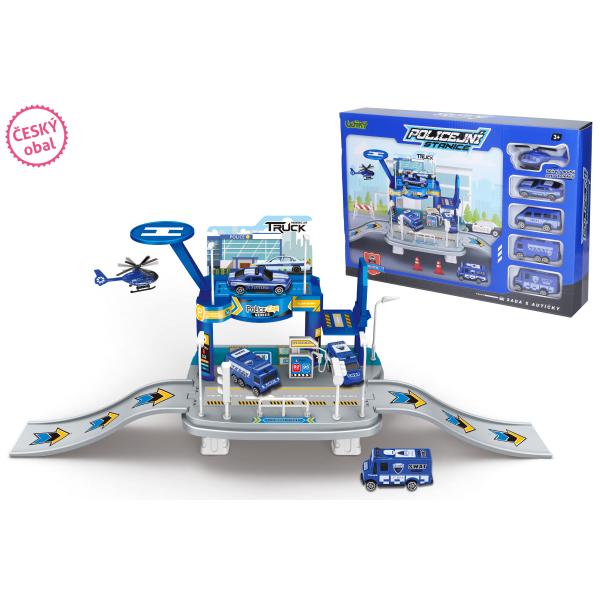 Rozměry stanice 65x19x24,5 cm Obsah balení - garáž, 4xauto, 1x helikoptéra Volná kola.
