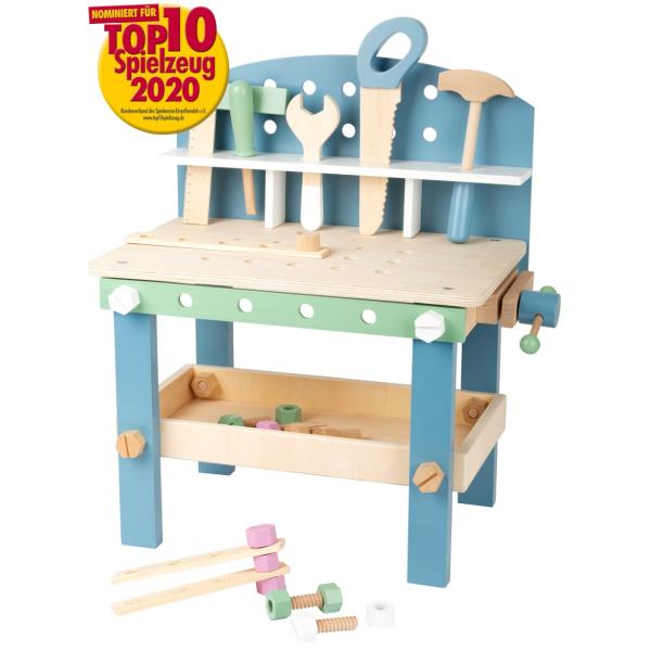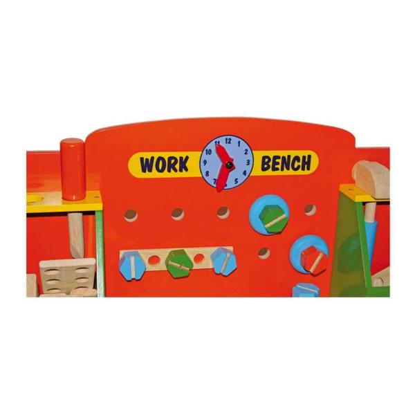 Dřevěný pracovní stůl s barevným příslušenstvím a nářadím pro malé mistry od 3 let. Malí řemeslníci se jednoduše naučí, jak se jednotlivé nářadí používá a na co slouží, aby následně například pomohli tatínkovi! Bohatá výbava…