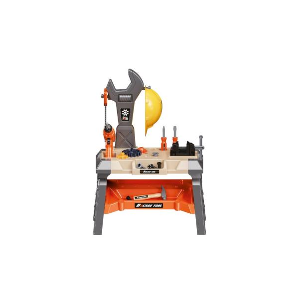 Stůl s nářadím. Rozměry 51x29x71 cm. Světelné efekty. 2xAA baterie do vrtačky nejsou součástí. Přepínač ON/OFF na vrtačce, přepínací tlačítko směru vrtání. Obsahuje stůl, svěrák, helmu, elektrickou vrtačku, pilku, 2 šroubováky, kladívko, hasák, kombinované kleště,…