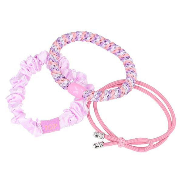 Fialové odstíny, motiv Talita – sada 3 gumiček do vlasů TOPModel – tenká látka, vícebarevná gumička do vlasů a gumička do vlasů s mašlí. Praktická sada gumiček do vlasů TOPModel obsahuje tři různé typy gumiček…