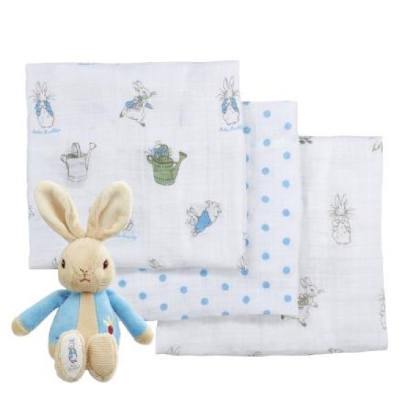 Doudou Dárková sada Plyšová kravička Aneth s dečkou zelená 28 cm