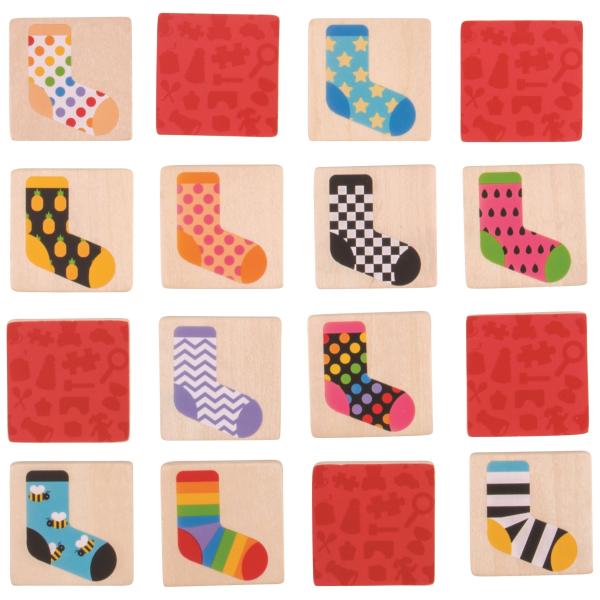 Tato hra s ponožkami jistě otestuje paměť a pozorovací schopnosti dětí! 32 dřevěných dílků je umístěno lícem dolů na stůl nebo podlahu. Hráči se musí střídat a otáčejí vždy dva dílky. Pokud se shodují, hráč…