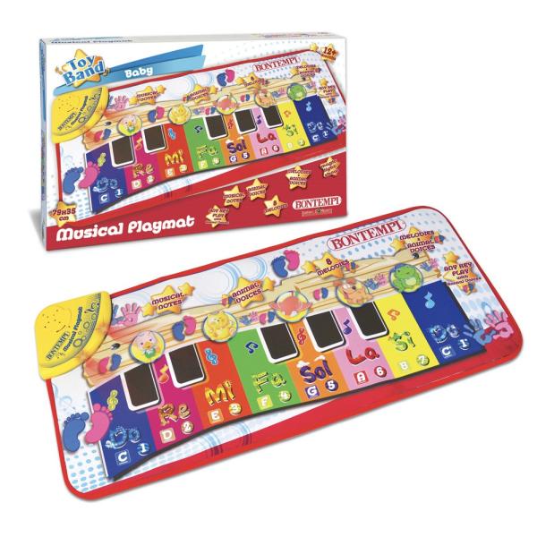 Elektronická hudební podložka 8 předem nahraných melodií 8 hudebních poznámek 5 zvířecích hlasů Jakékoliv přehrávání kláves nastavení hlasitosti Napájení: 3 baterie R6 / AA 1,5 V (nejsou součástí dodávky) Rozměry: 790 x 350 x 10…