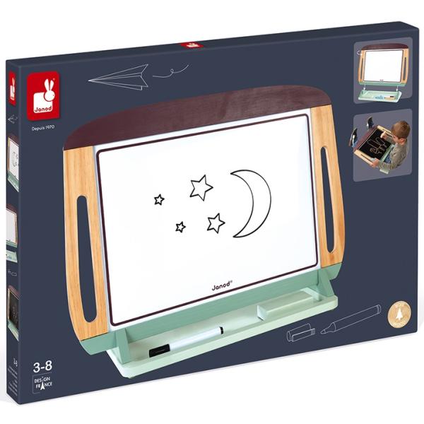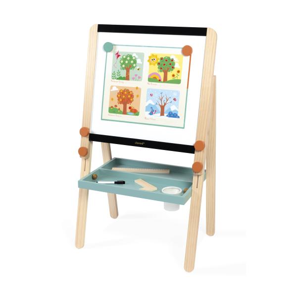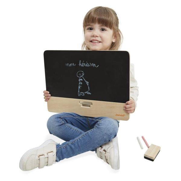 Škola doma... zábavná a barevná verze! Tato skvělá nastavitelná dřevěná tabule, navržená tak, aby rostla s vaším dítětem, má dvě strany: černou břidlicovou a bílou stranu, což poskytuje spoustu možností! Obsahuje 3 barevné křídy, 1…
