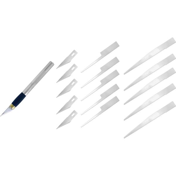 Charakteristika:Modelcraft profesionální modelářský nůž velký, s čepelí #2. Rukojeť z hliníku o délce 125mm. Ideální pro práci v úzkých prostorách při práci se dřevem, plastem či papírem. Celková délka 158mm, průměr 15mm, hmotnost 37g. Nůž…