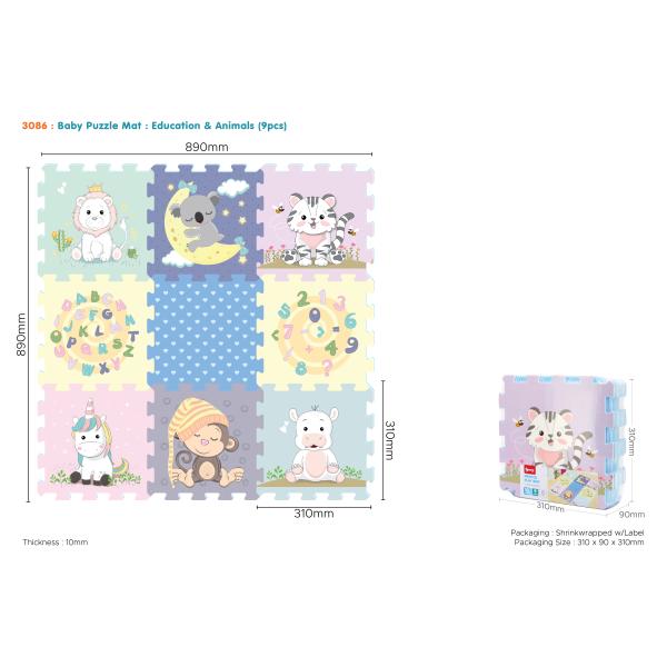 Puzzle obsahují 8 velkých částí, jsou měkké, barevné, snadno omyvatelné a dají se z nich stavět 3D tvary, např. Kostka nebo krabice. Mohou být také použity jako podložka na hraní. Pěnové puzzle rozvíjí dětskou představivost…